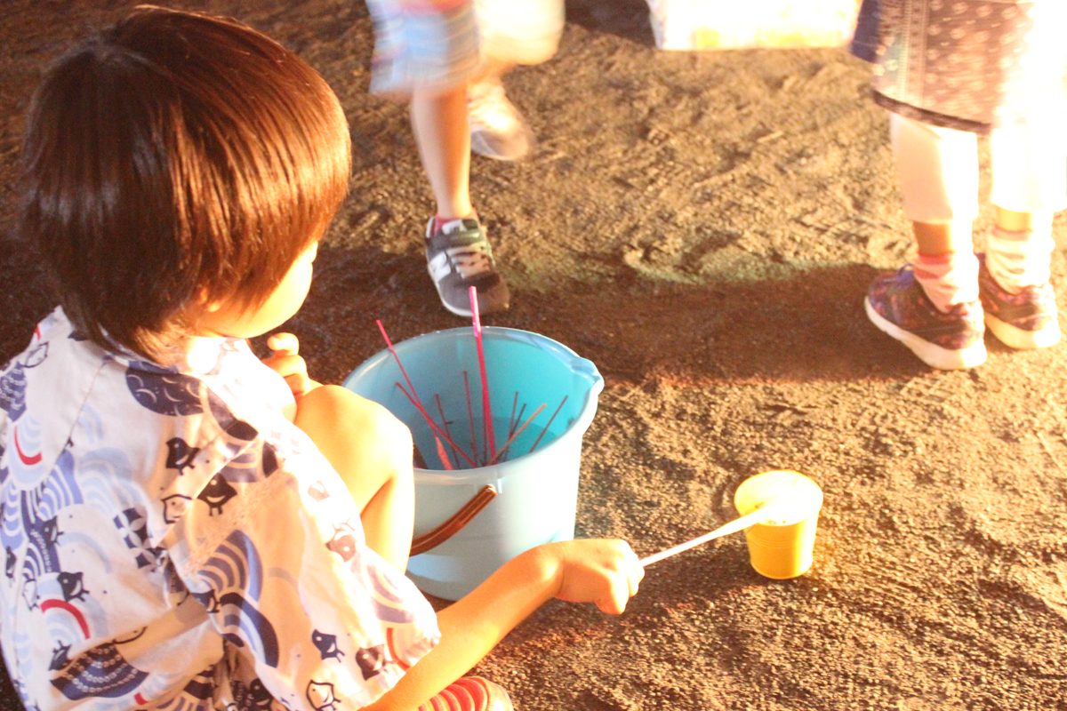 花火は必ず1本ずつ着火させましょう。数本まとめて着火させると炎の威力が大きくなりとても危険です。火を扱う遊びなので必ず大人が安全に誘導してあげましょう。