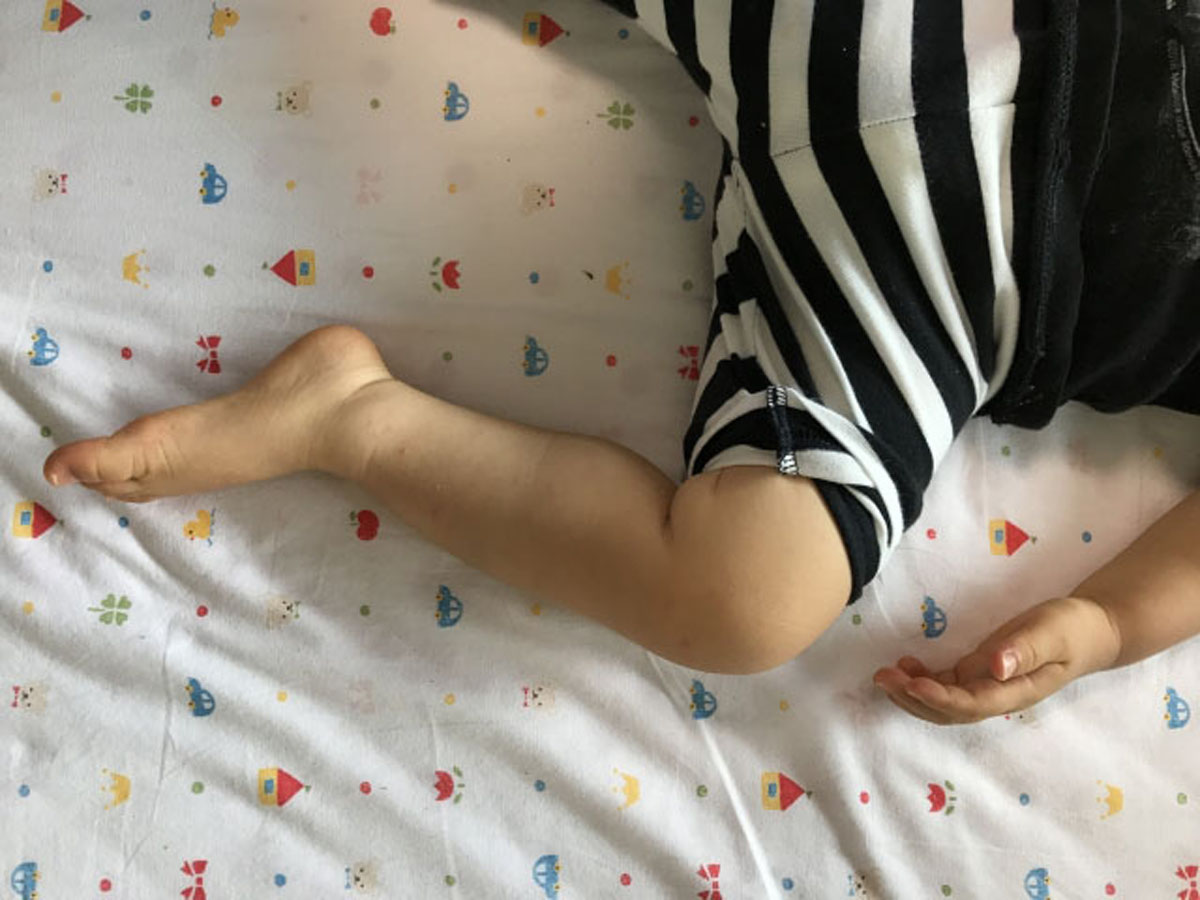ある日、突然の高熱のあと、痛々しい湿疹。全身がかなり痛むようで、足の爪がめくれてしまうほどの症状。手足口病でした。