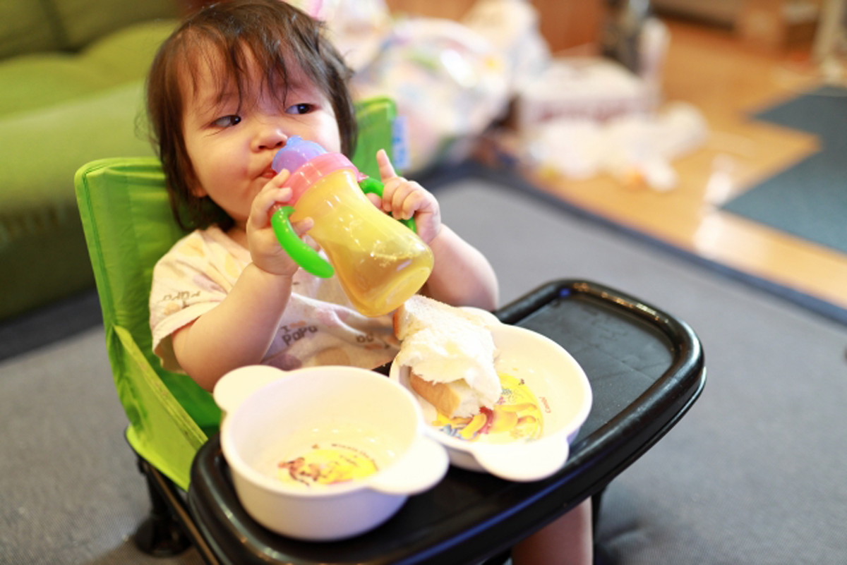 紙パックの飲み物が吸えるようになったら、更に吸う力をつけるためにストローマグで練習を始めましょう。なかには、始めて見るストローマグを嫌がる慎重派の赤ちゃんもいるかと思いますが、「お茶が入っているよ」など優しく声をかけながら慣れさせましょう。興味を持たない始めのうちは、赤ちゃん用のジュースなどを入れて楽しみながらトレーニングを進めてもいいかもしれませんね。