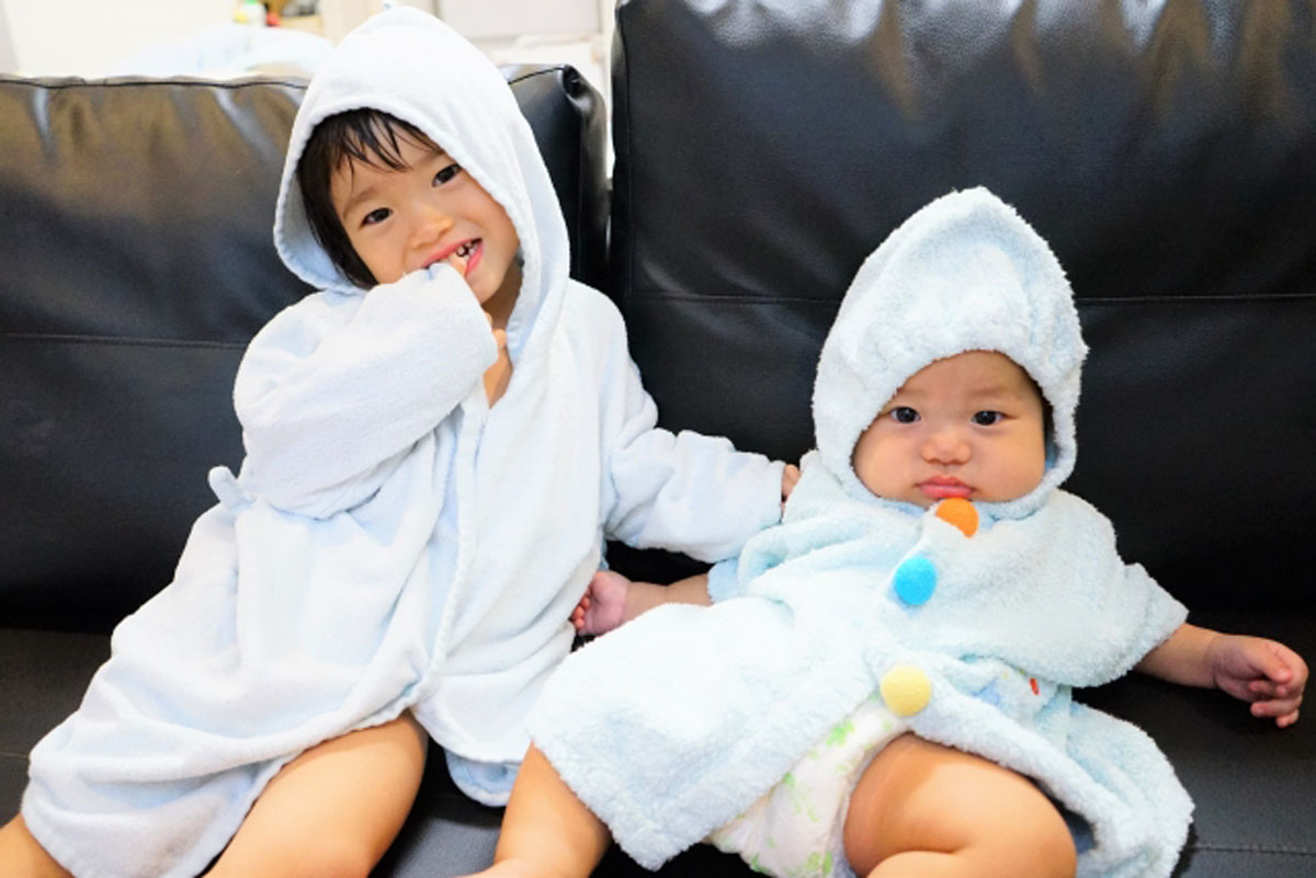 「赤ちゃんのころは、ワンオペではなかなか双子と三人で入浴はできませんでした。特に冬場はすぐに冷え、一度に入れるとどちらかを洗っているときに寒い思いをさせなければいけないので、自分が洗い終わった後に一人ずつ順番に洗っていました。」(双子のママの入浴法)